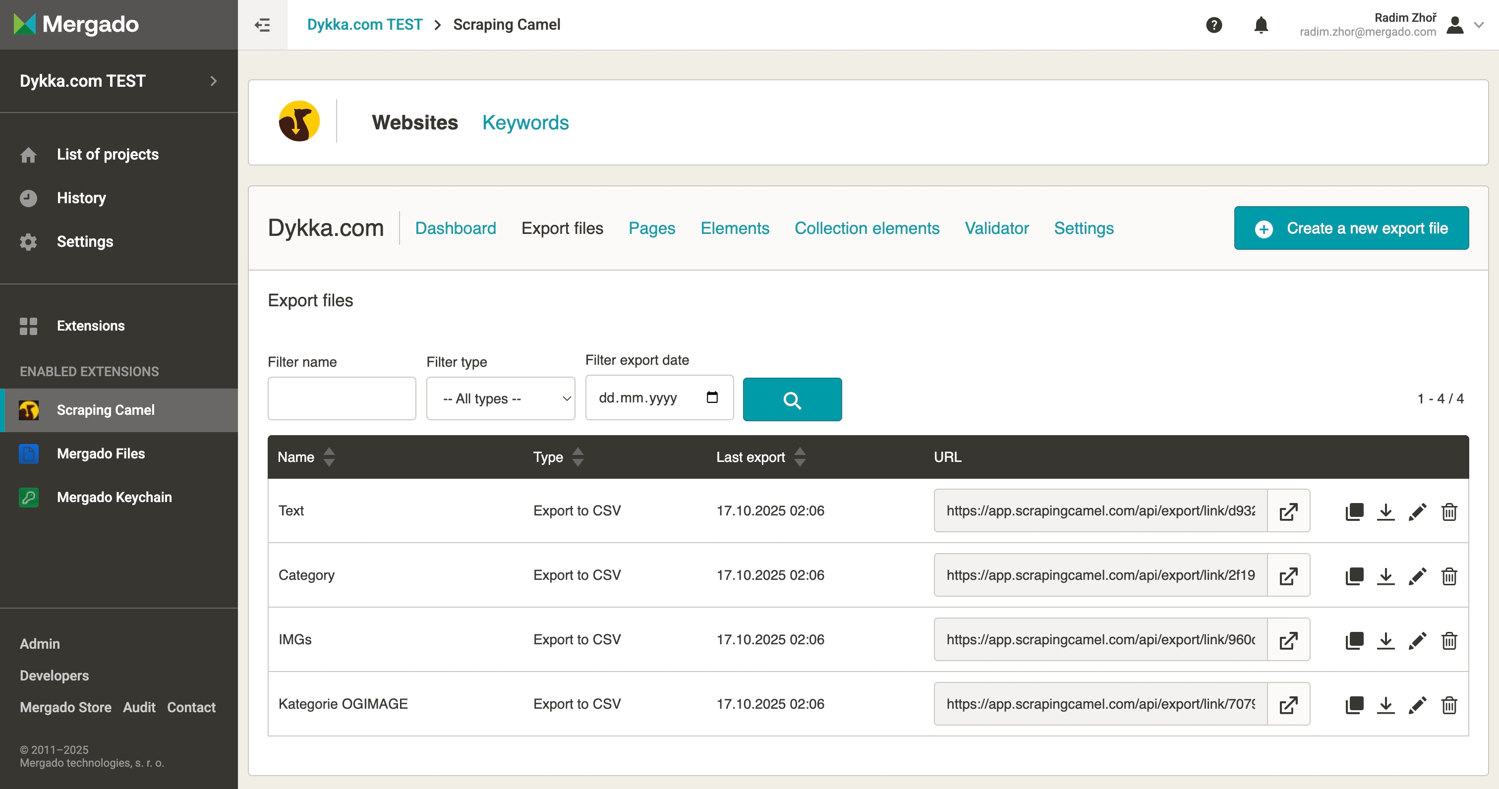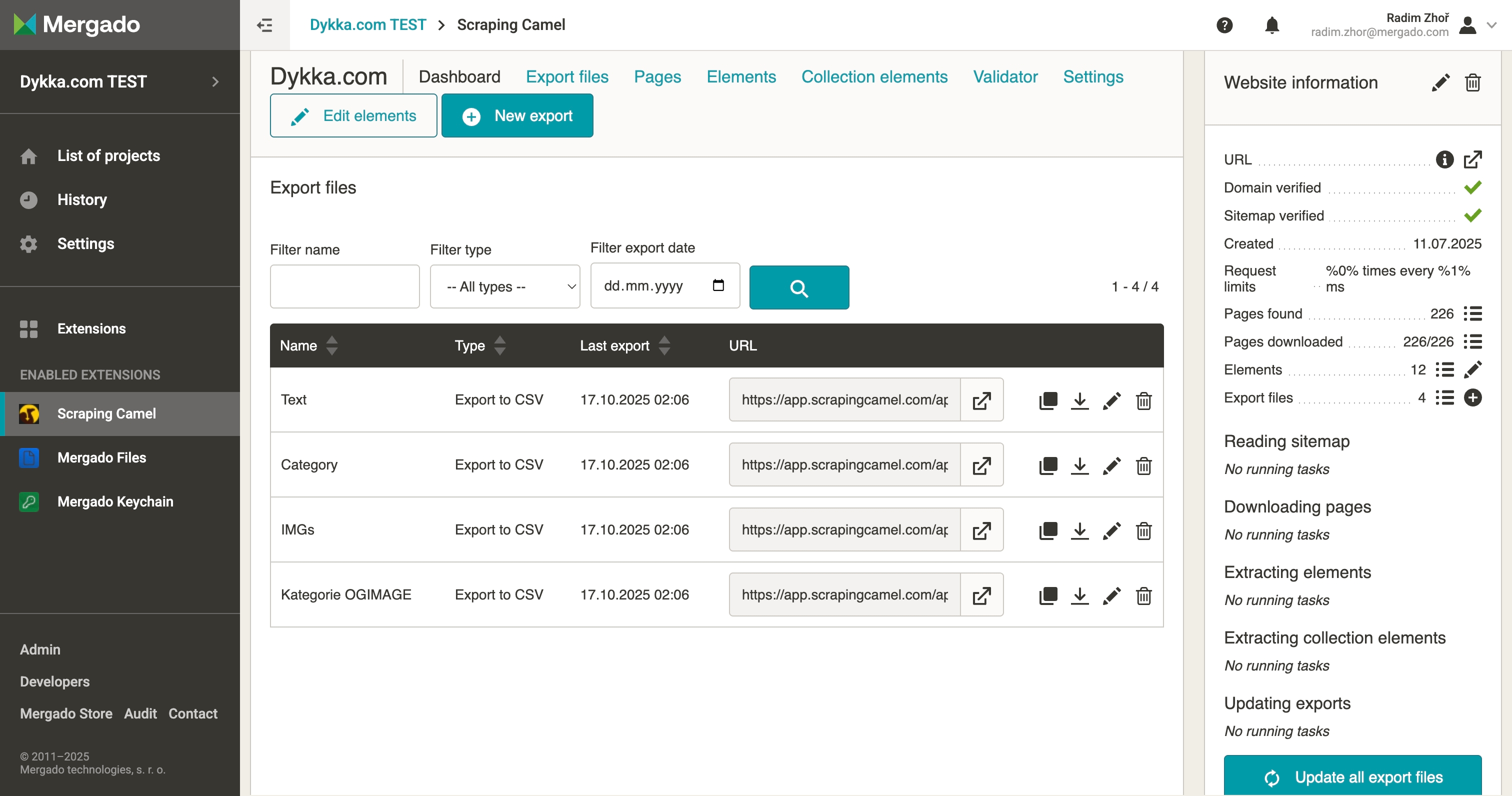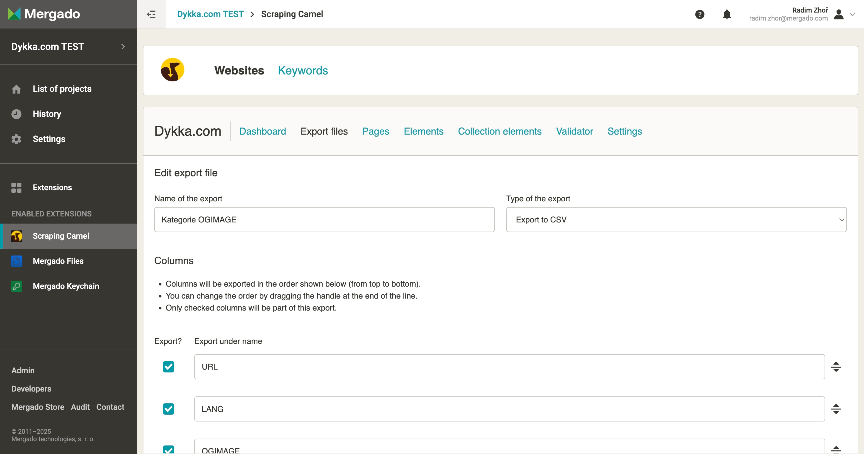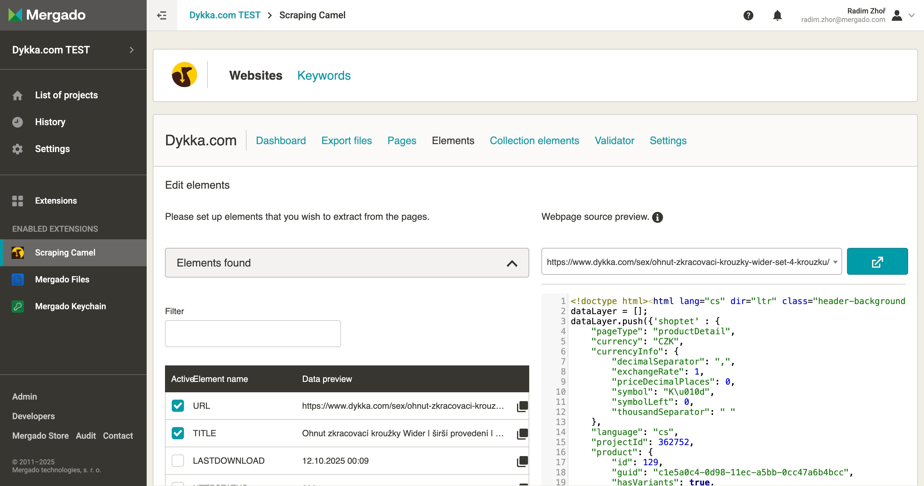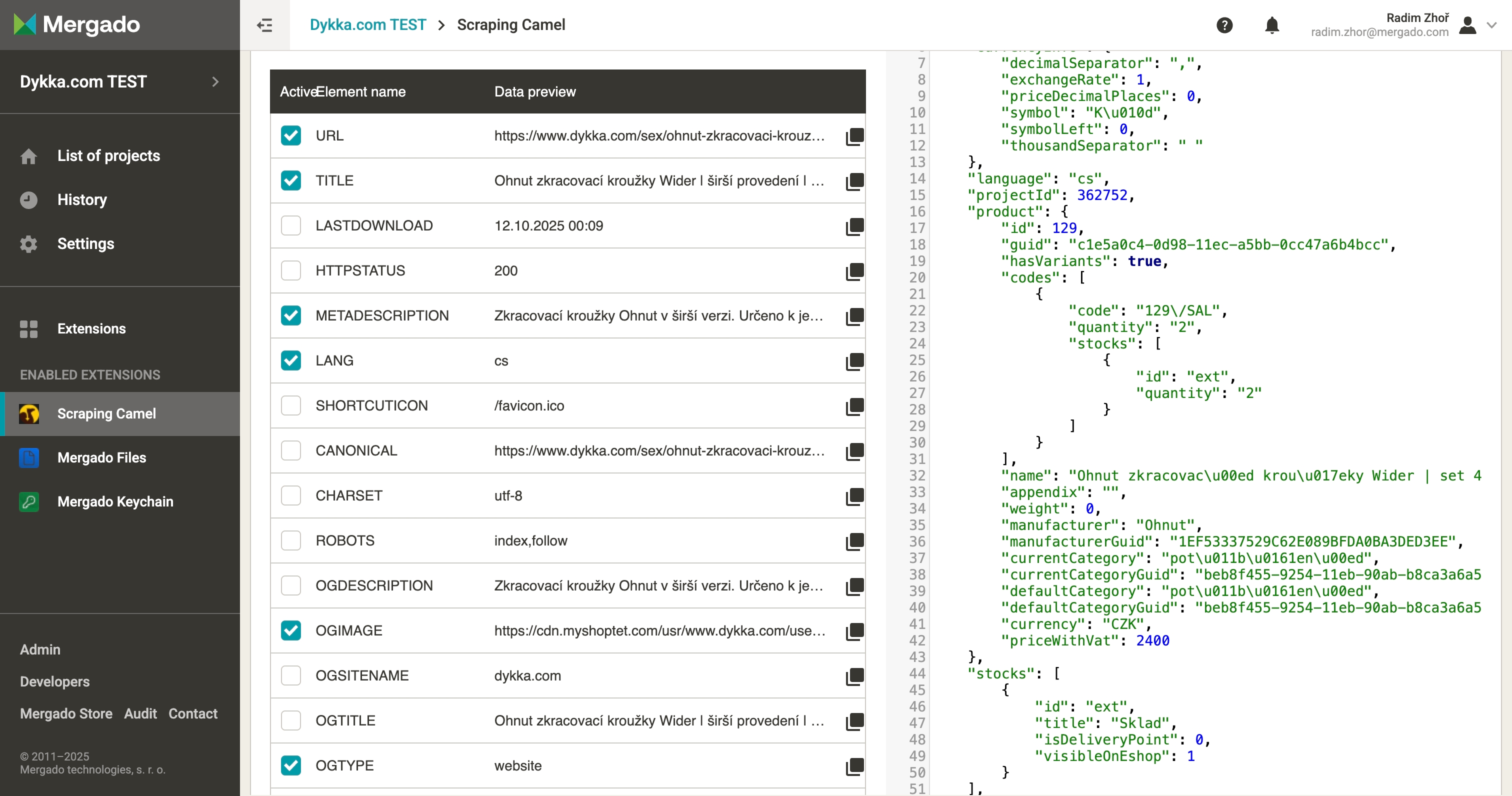 - Mergado extension: Scraping Camel – scraping the original website and retrieving data that could not be exported in a standard way