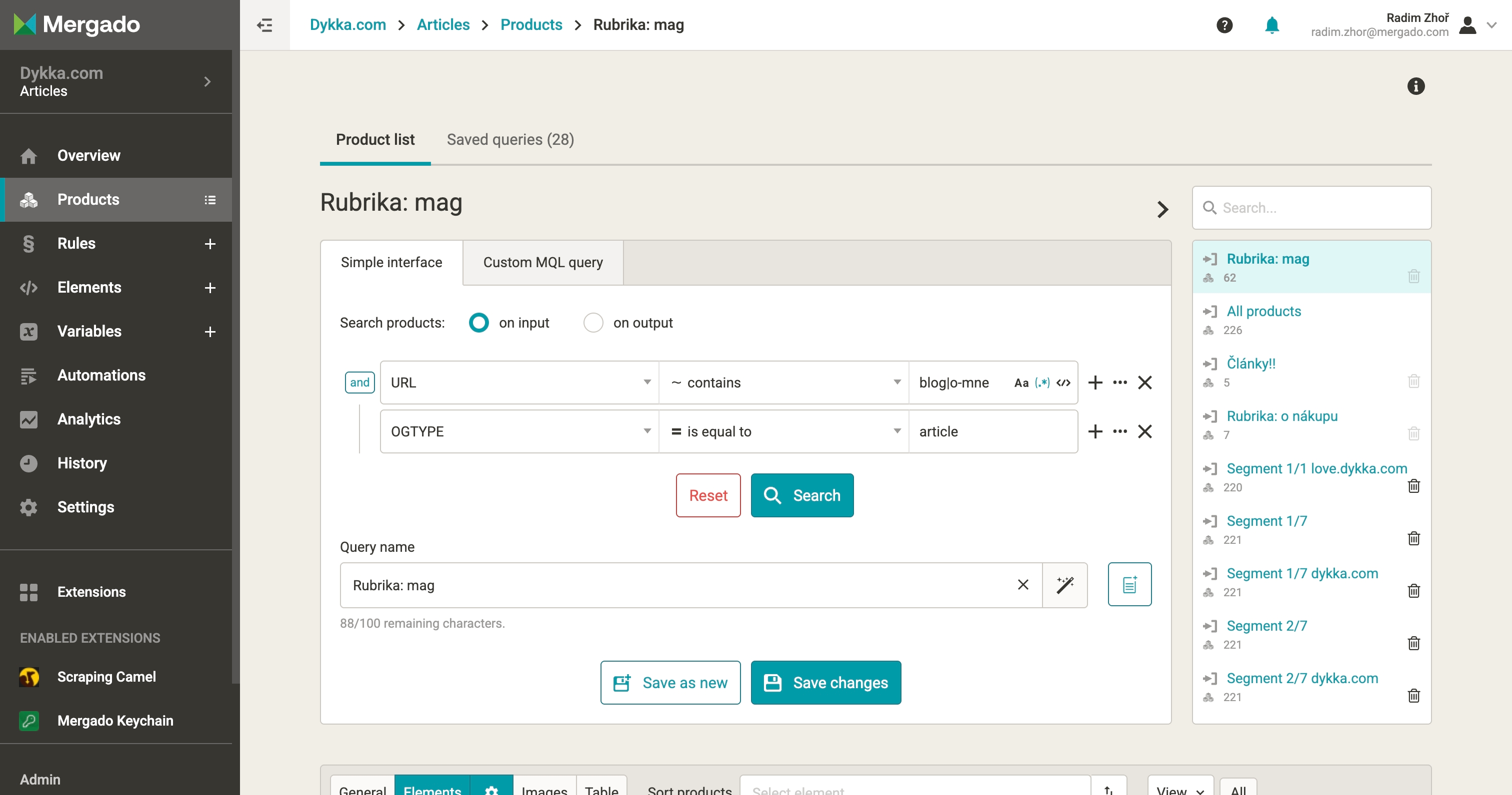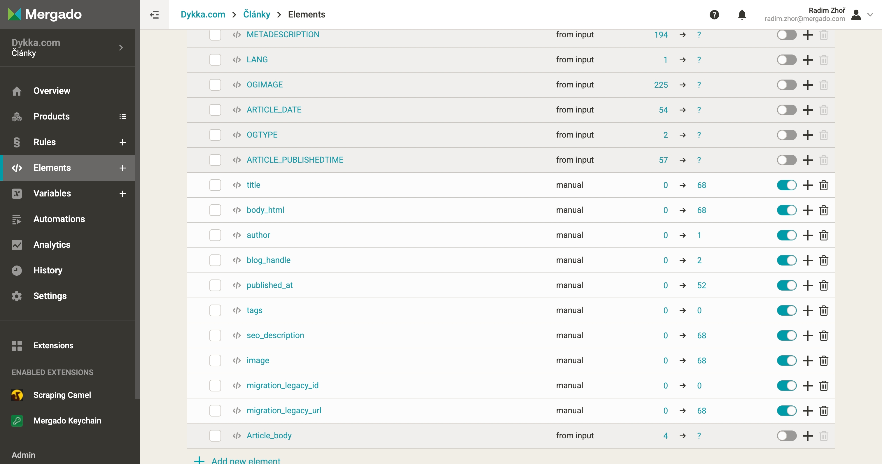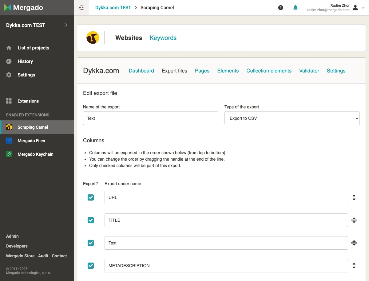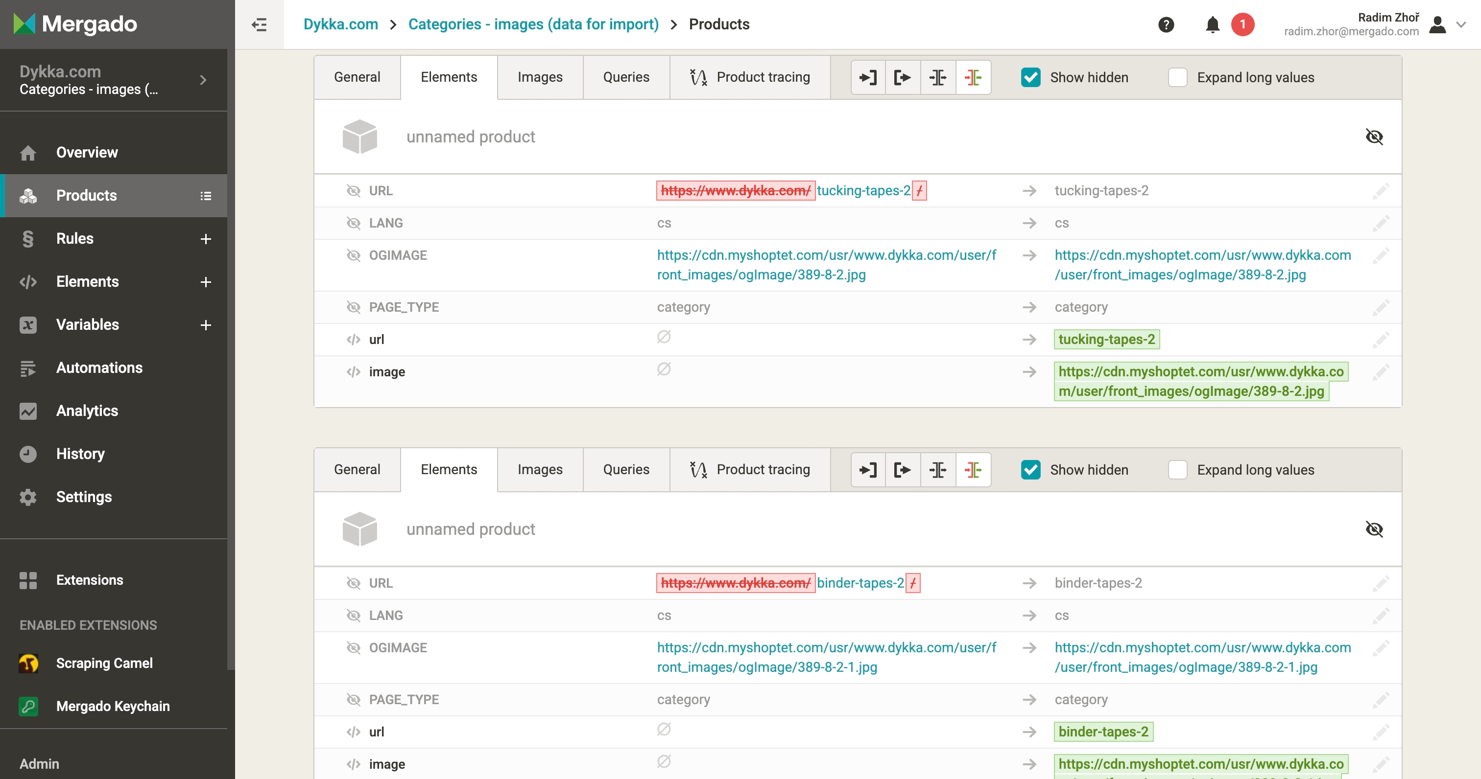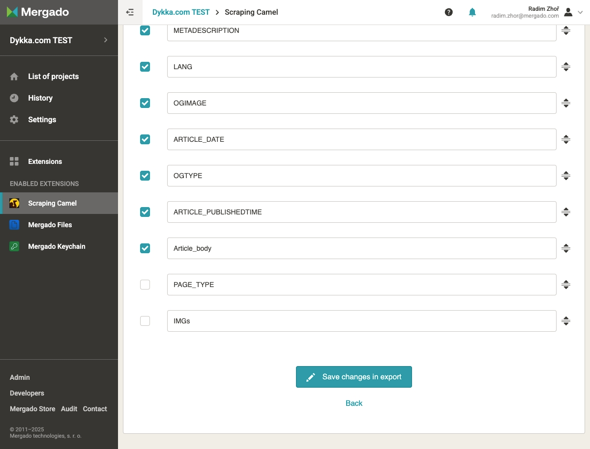 - Mergado extension: Scraping Camel – scraping the original website and retrieving data that could not be exported in a standard way