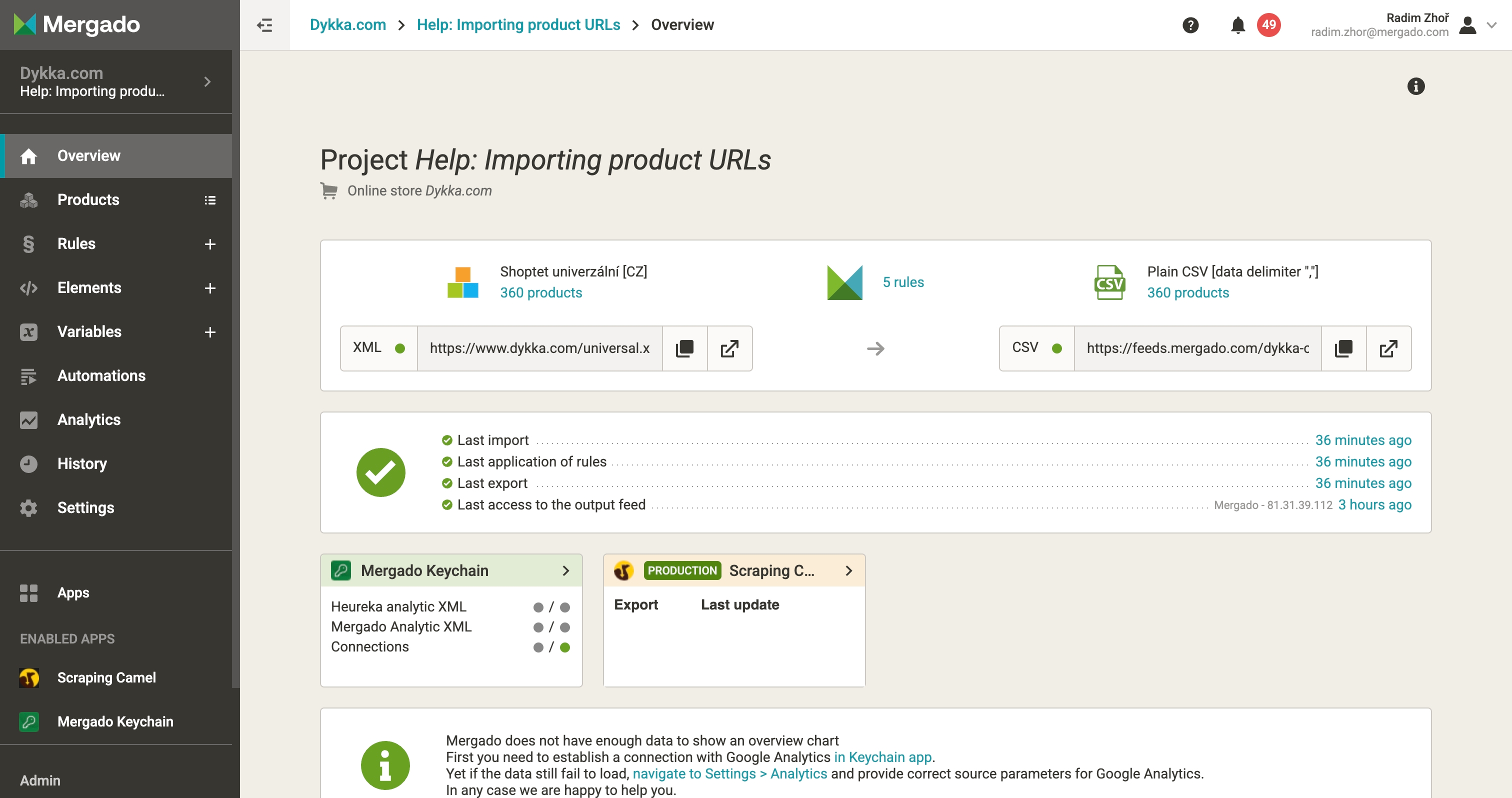- Mergado account – for preparing data and activating Scraping Camel & Shopify Importer