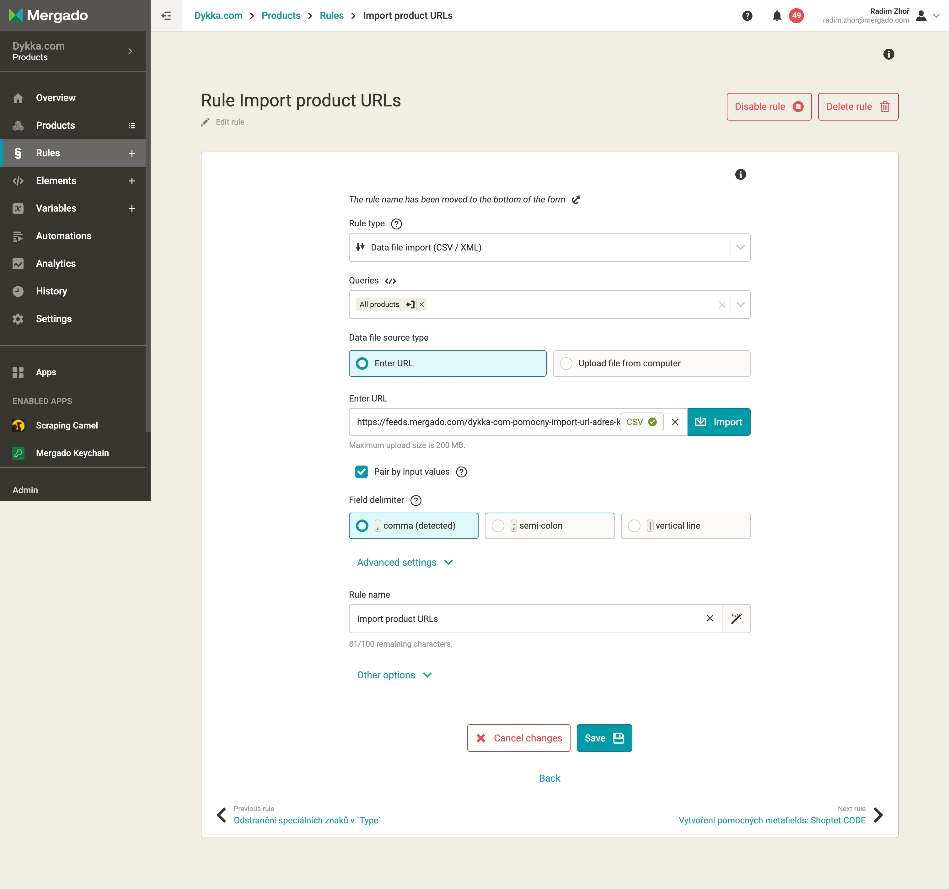 - Import the CSV file into Mergado — input format Plain CSV, output Plain CSV.