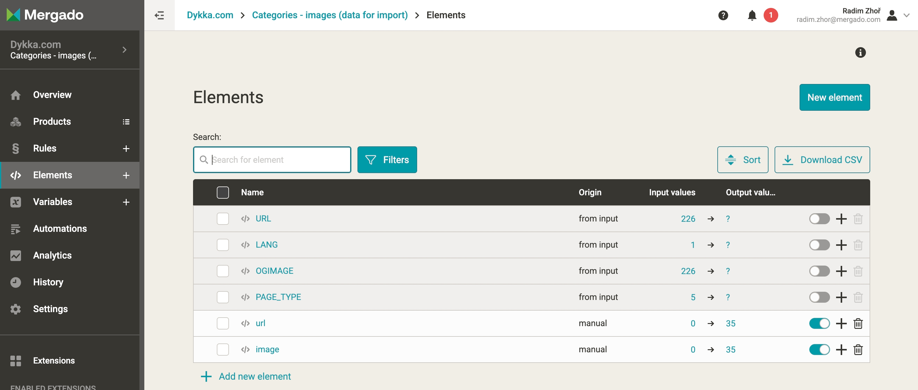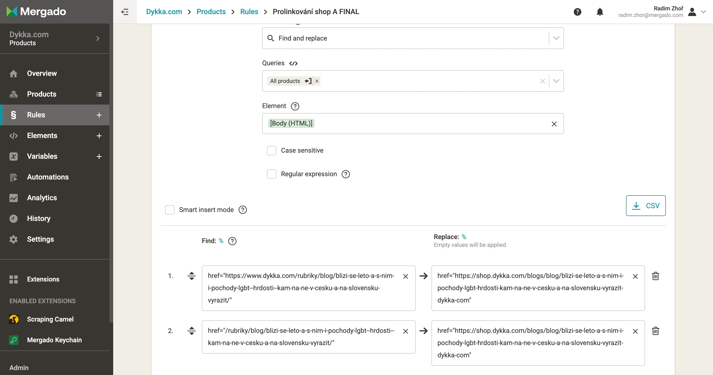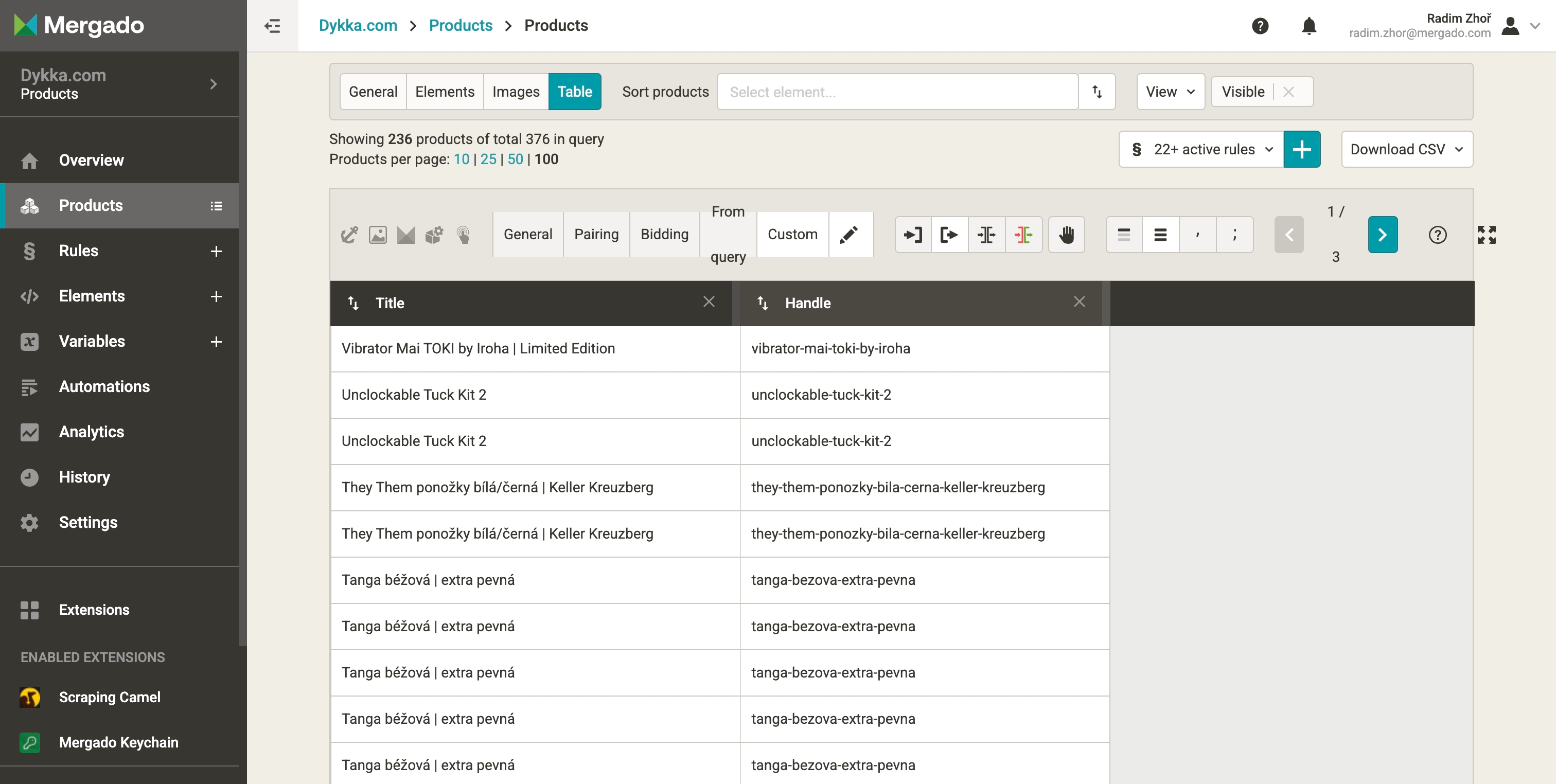 For a successful migration, we used Mergado, a data editor that allowed us to bulk optimize and transform product data for smooth import into Shopify. We also took advantage of several Mergado extensions, which we’ll describe in more detail in later sections of this case study.