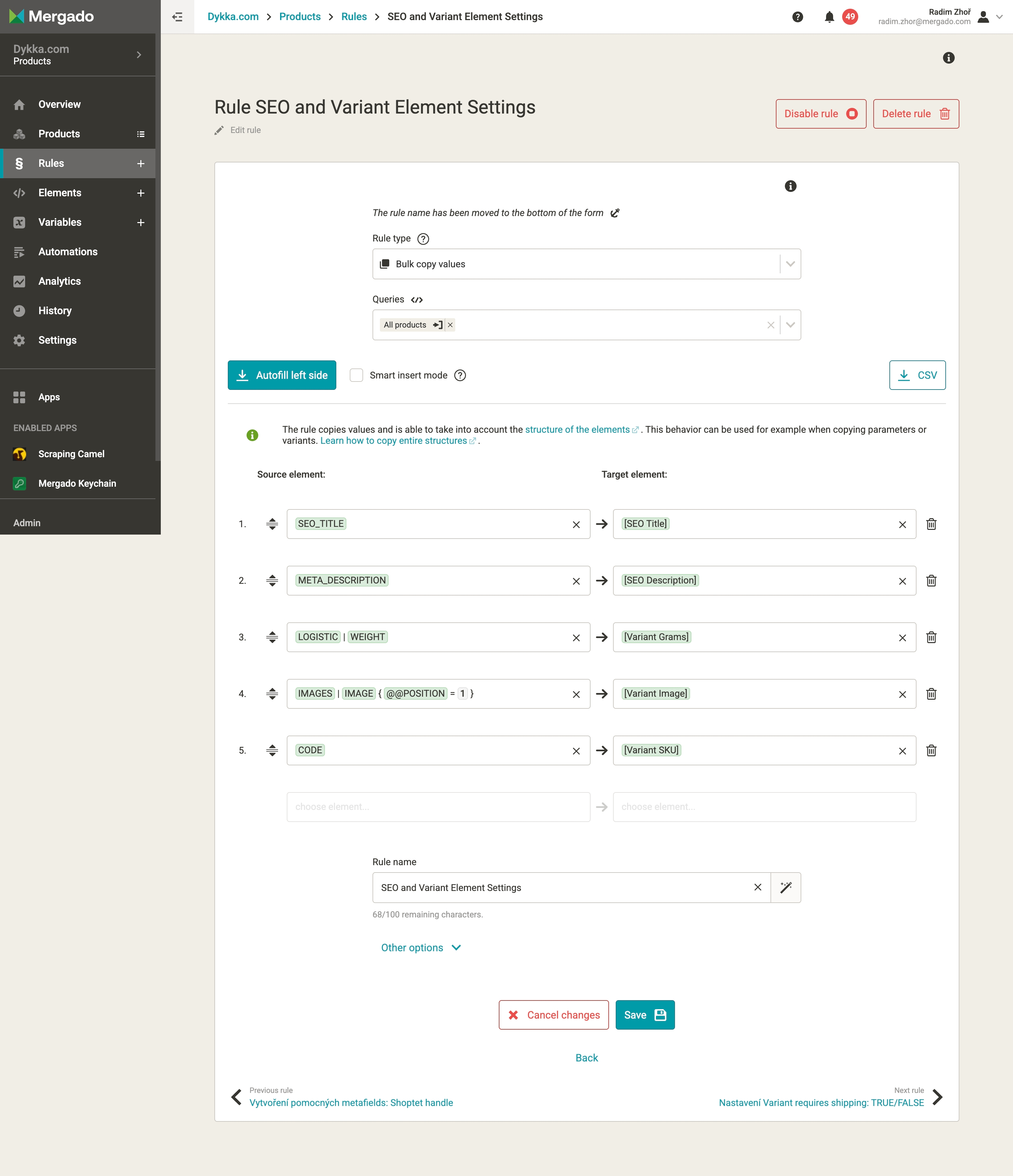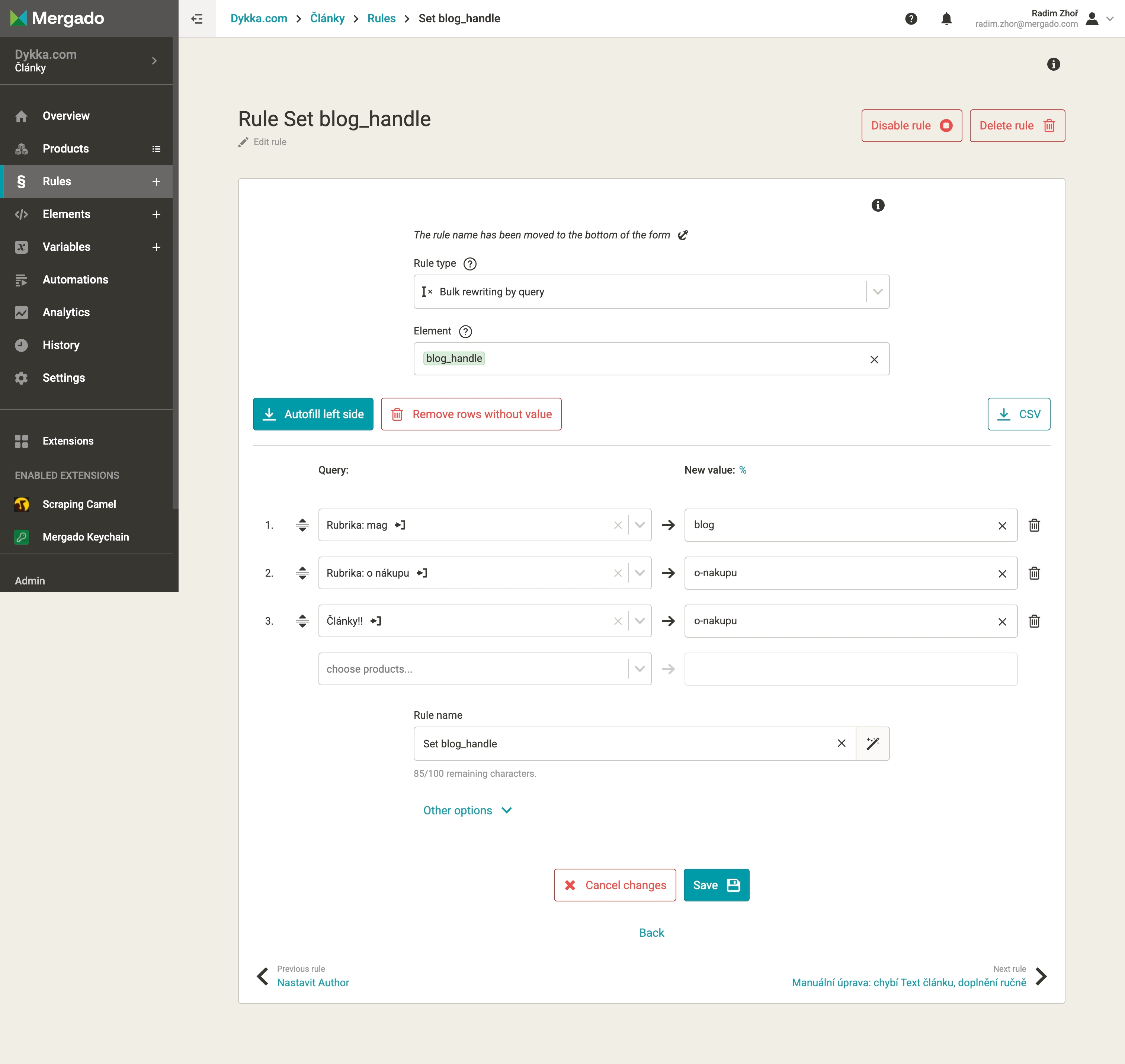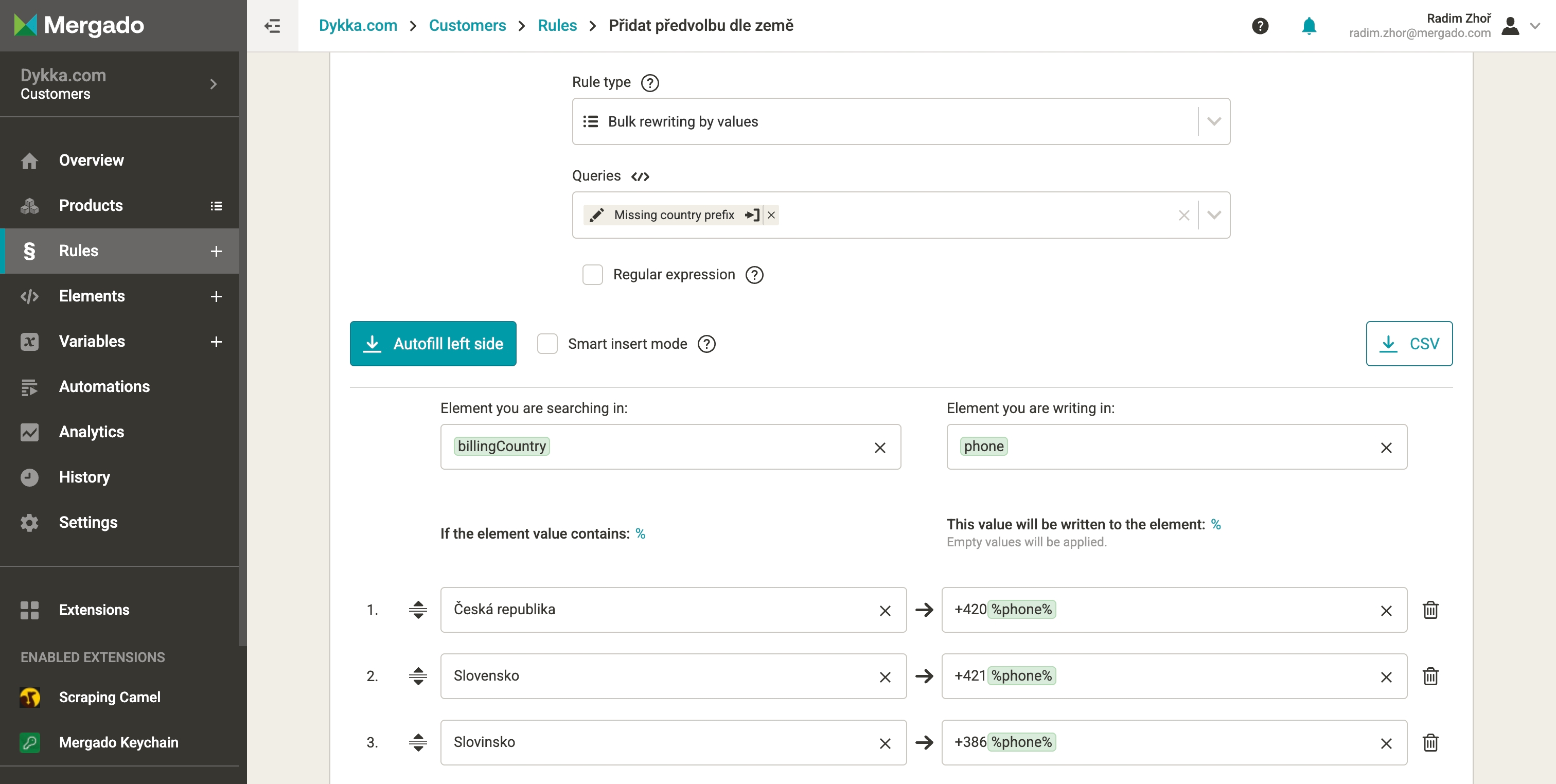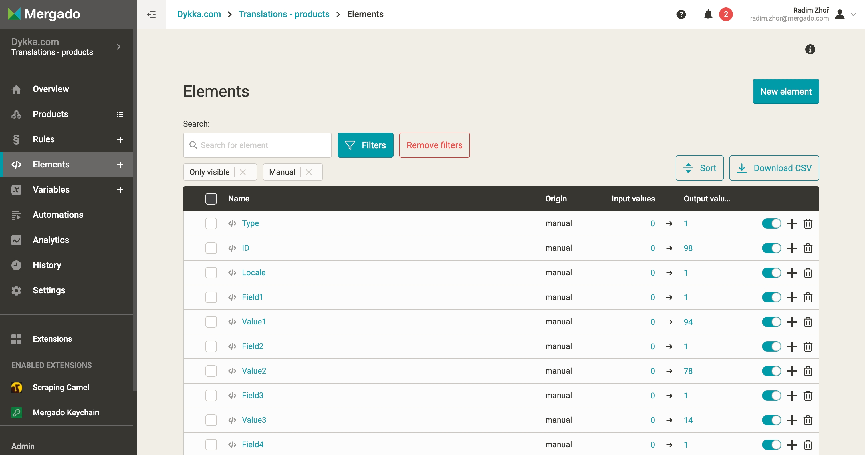 For a successful migration, we used Mergado, a data editor that allowed us to bulk optimize and transform product data for smooth import into Shopify. We also took advantage of several Mergado extensions, which we’ll describe in more detail in later sections of this case study.
