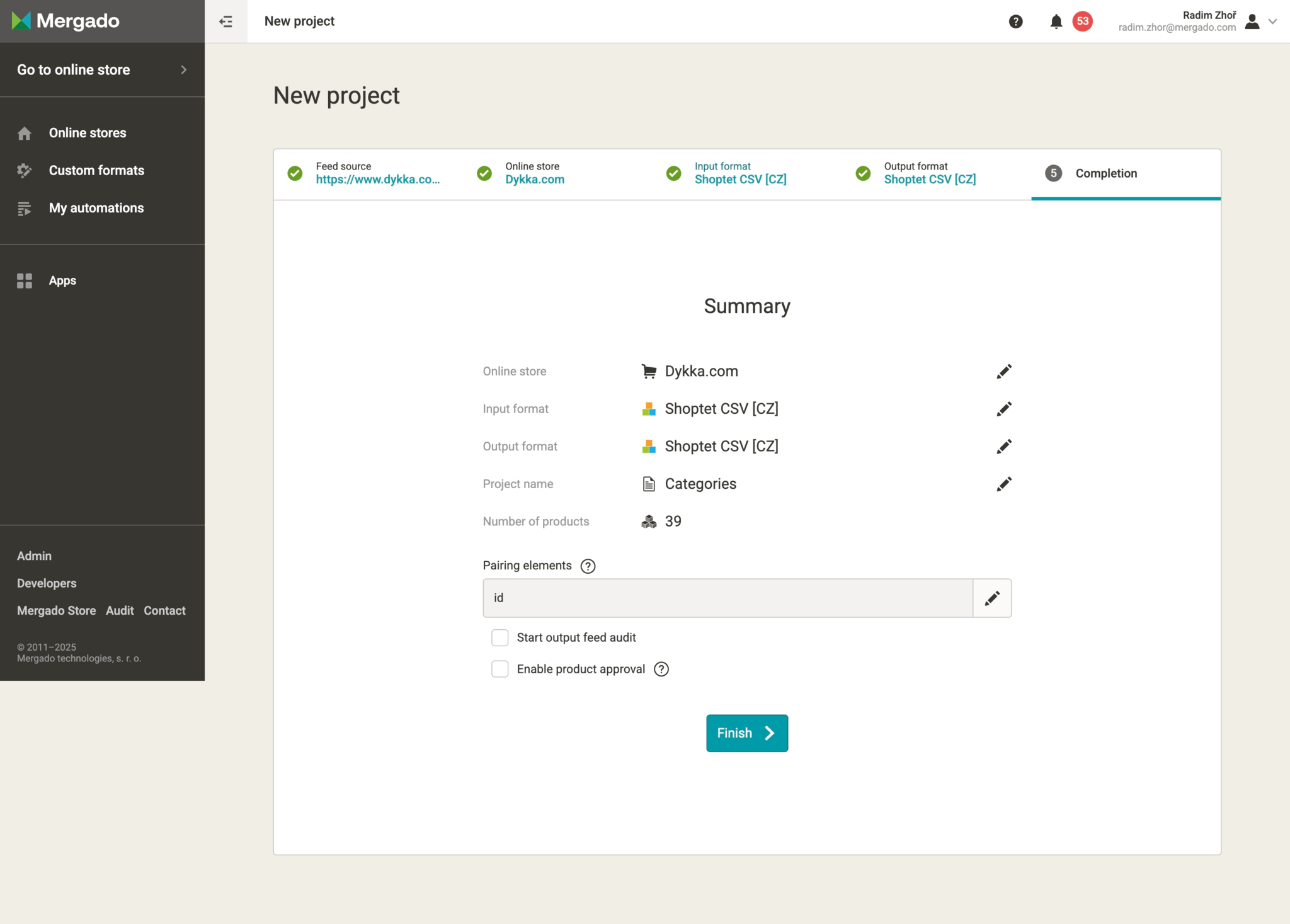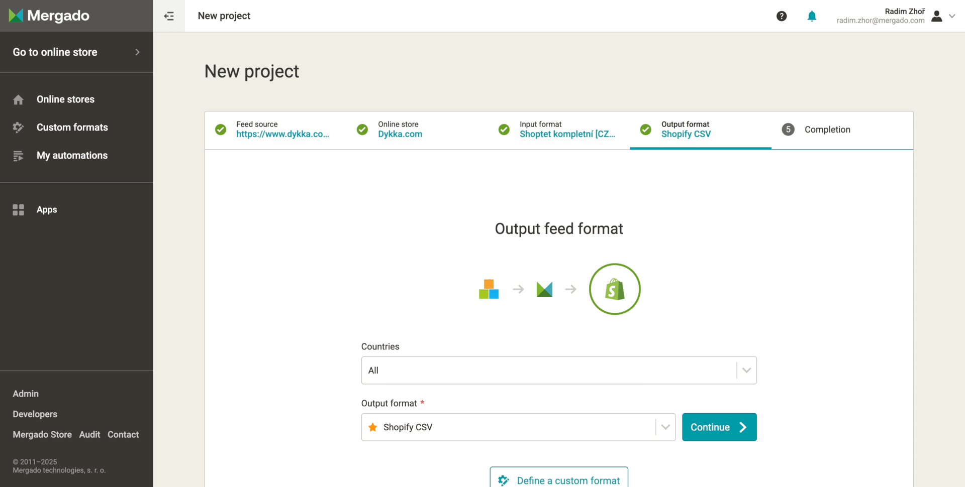 - Shopify custom app: Mergado – connecting Mergado with Shopify