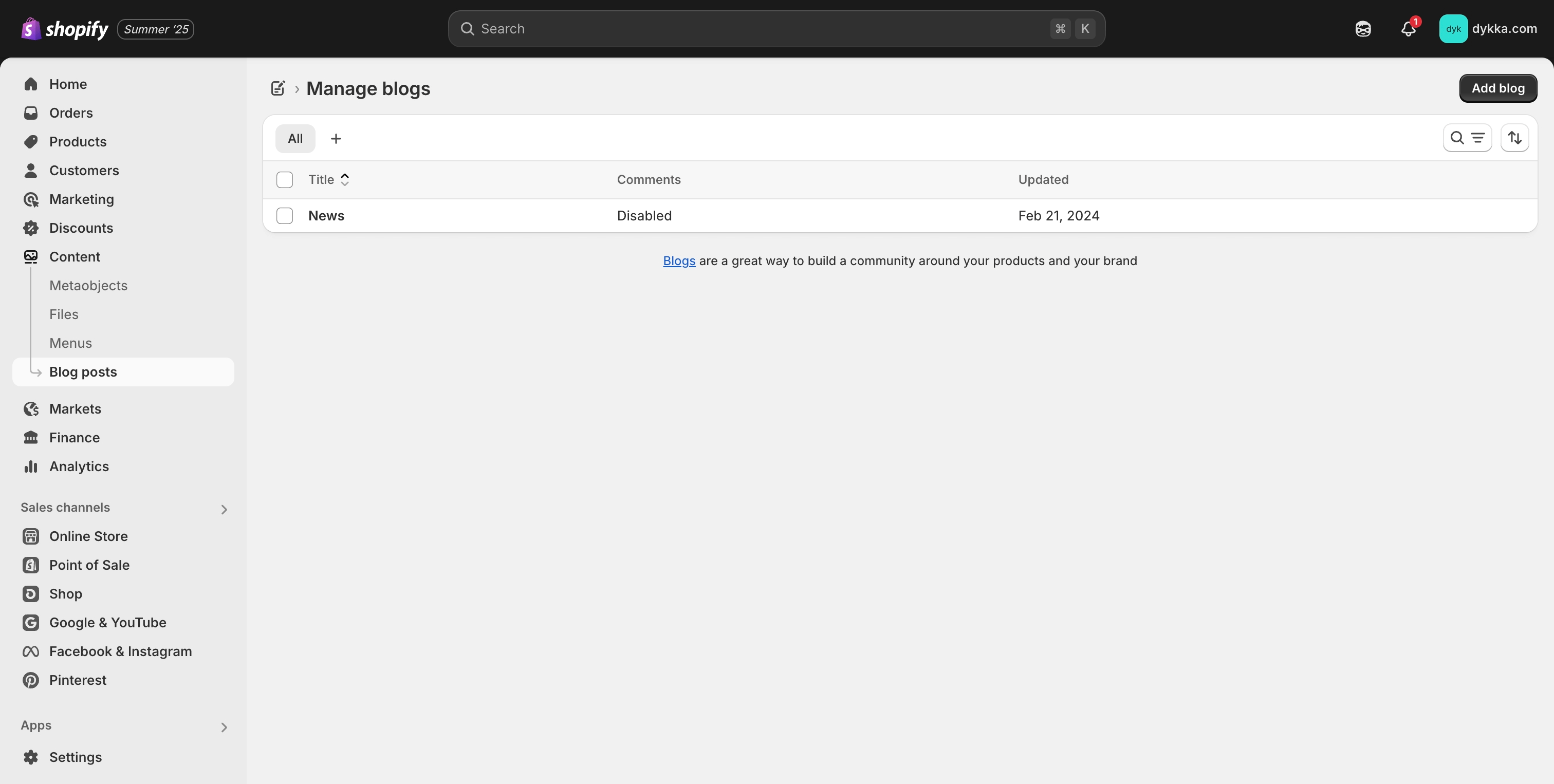 ). the Admin API token from the Mergado custom app (in Shopify), and the public domain of the new store (e.g., shop.dykka.com).