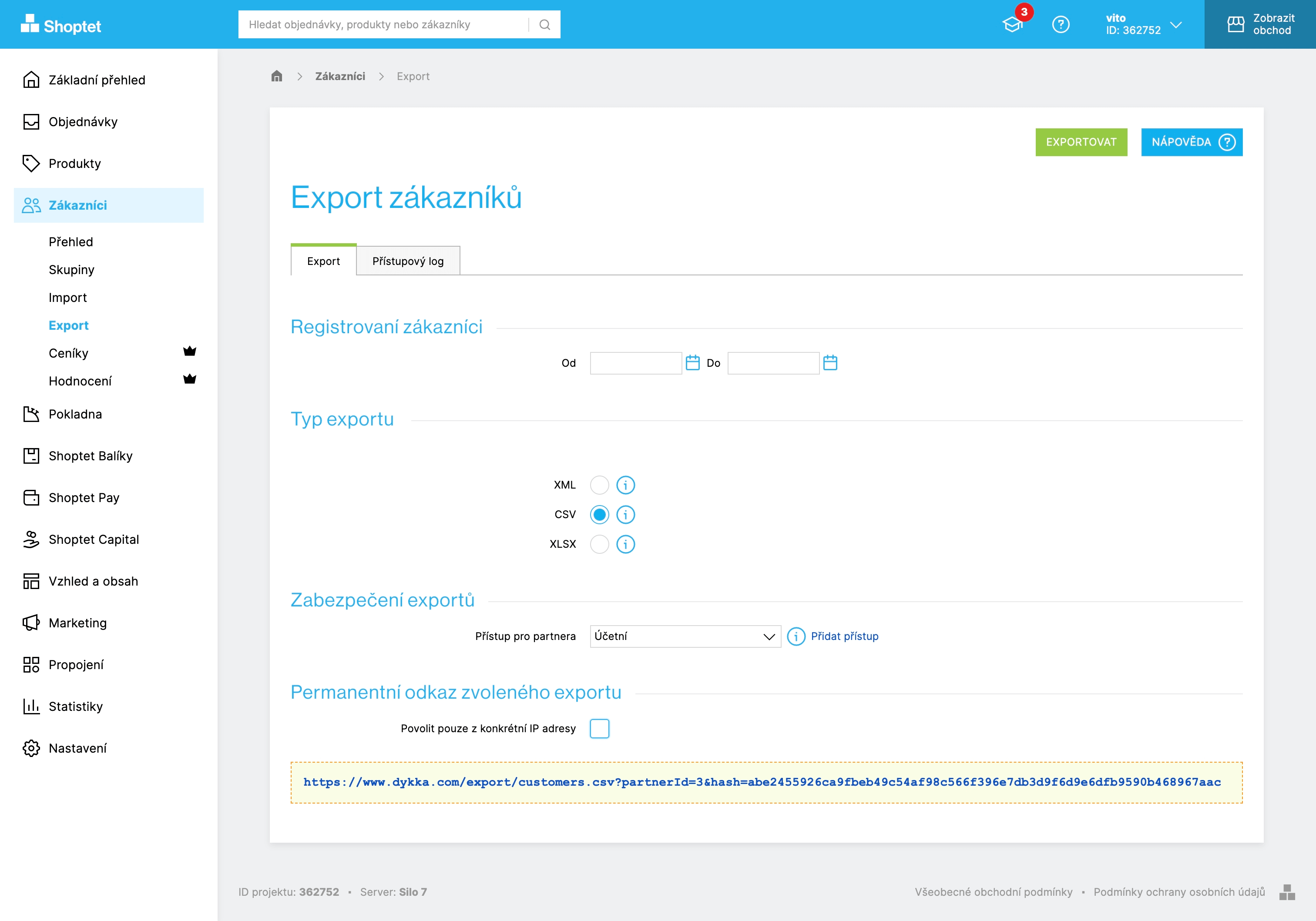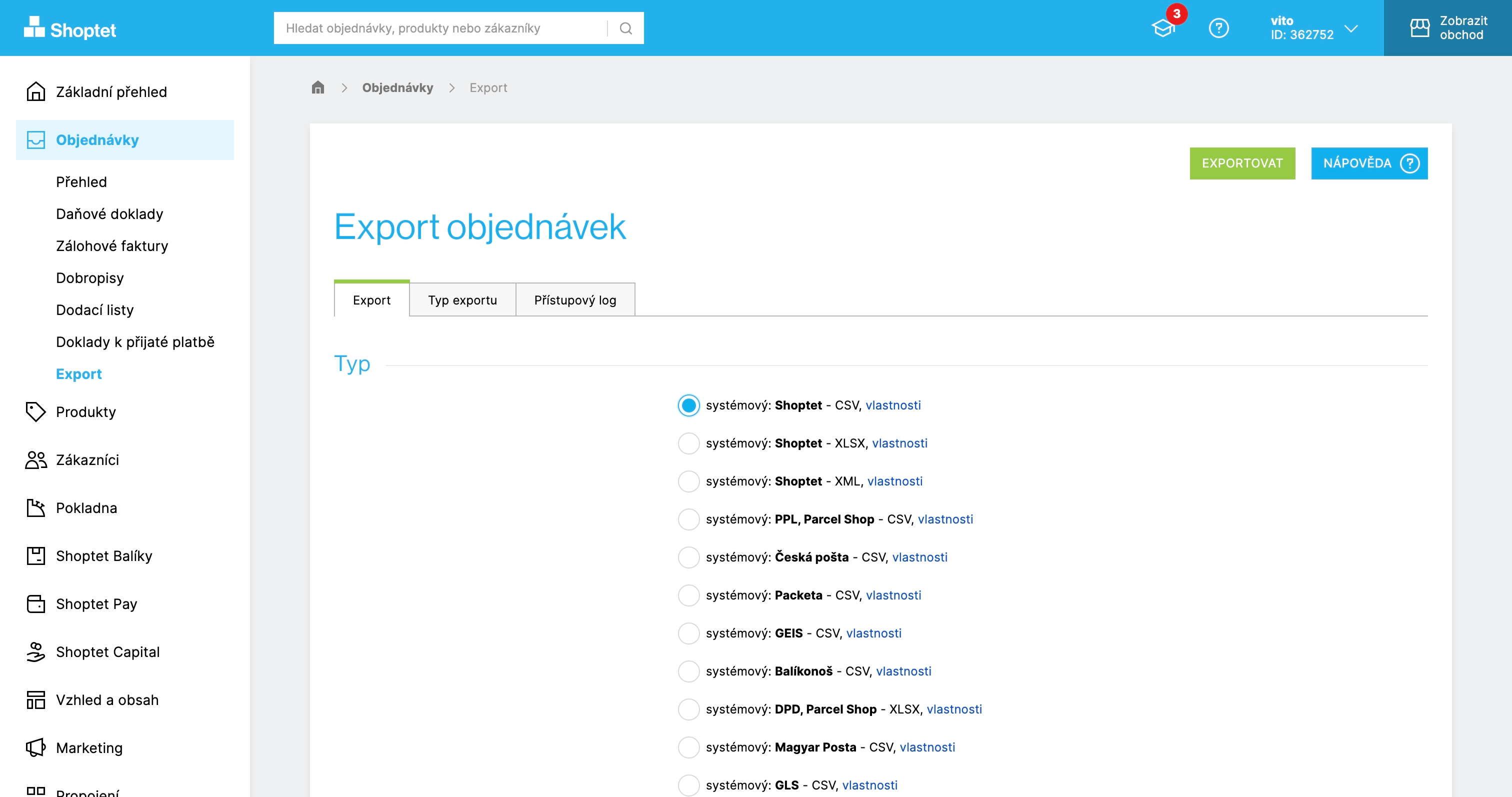 - For the Shopify CSV format, provide the original Shoptet ID (e.g.,