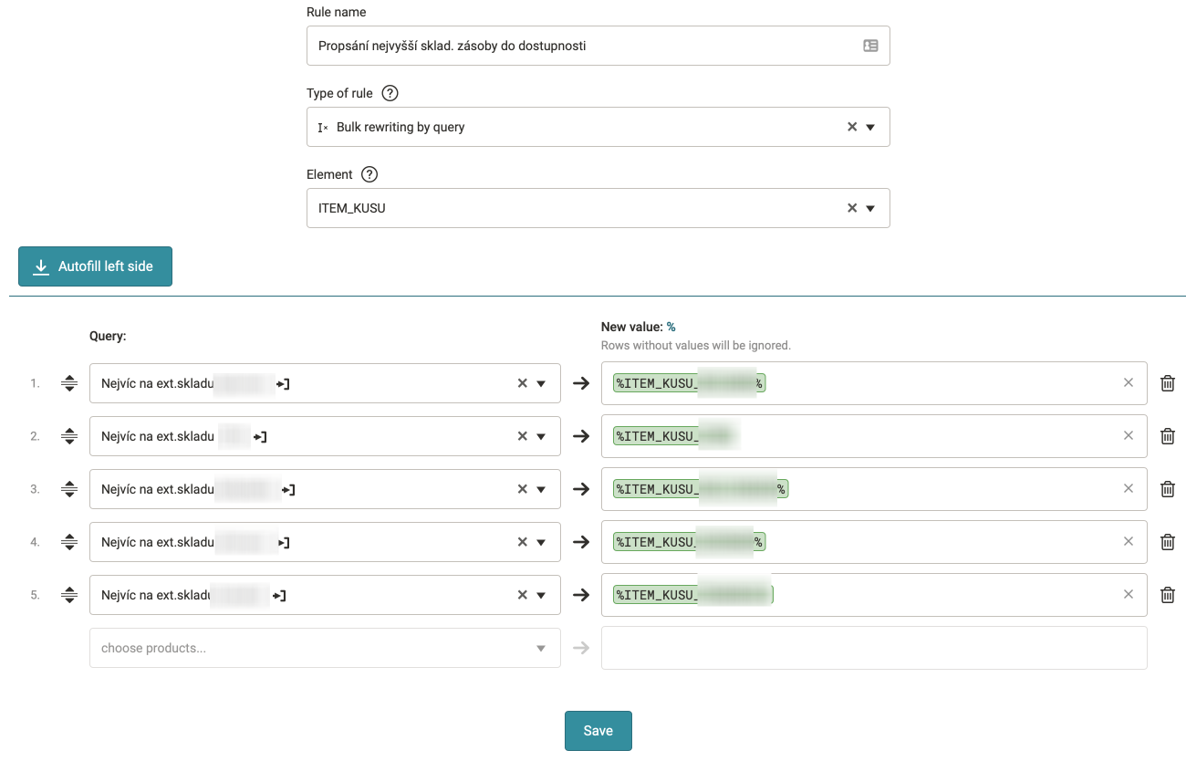When we know which supplier has the highest stock, we used the Bulk rewriting by query rule to overwrite the stock in the STOCK element: